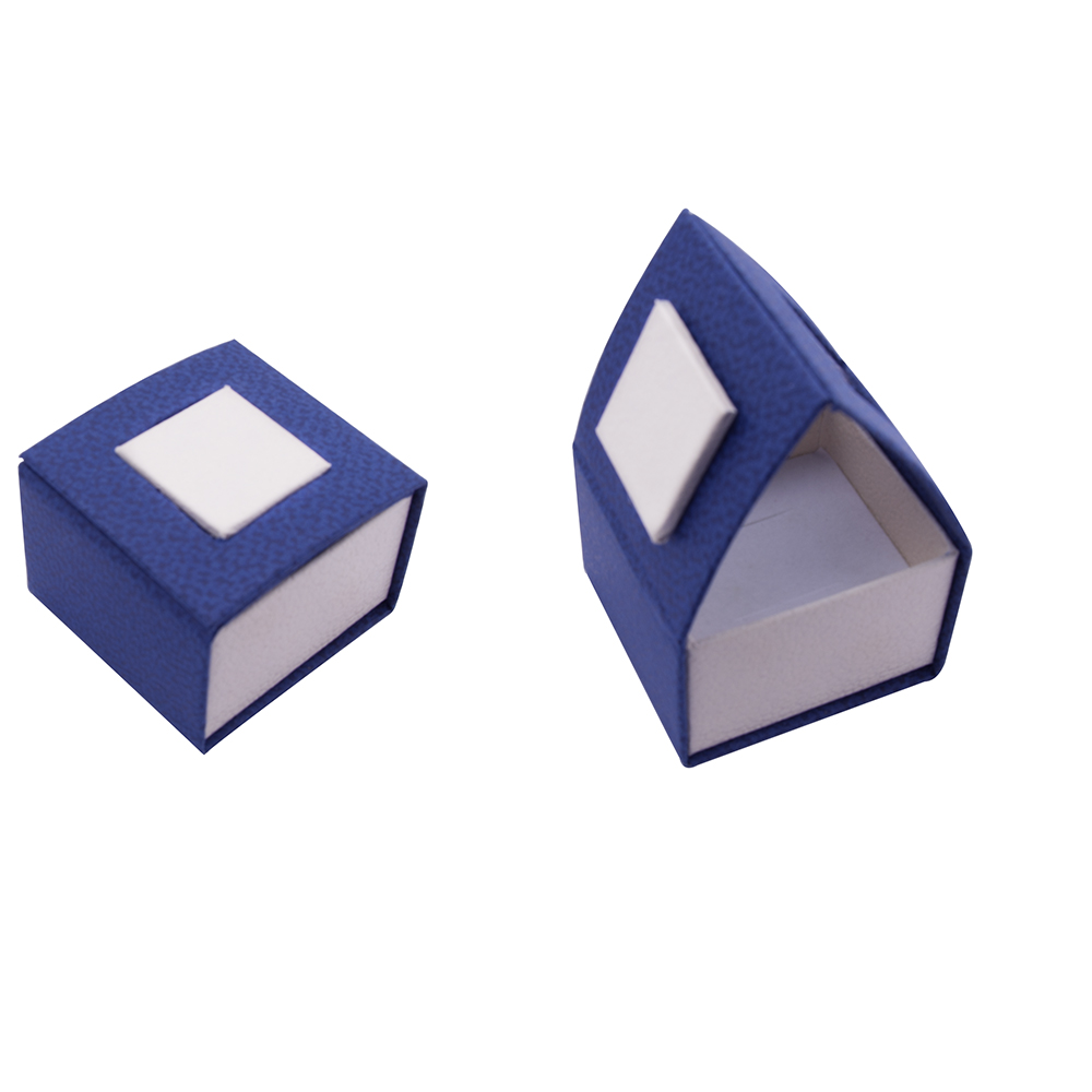 Універсальний картонний футляр квадратної форми синього рябого кольору з віконцем і 2-ма сторонами бежевого кольору.