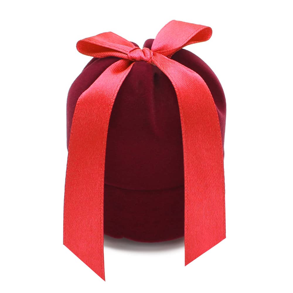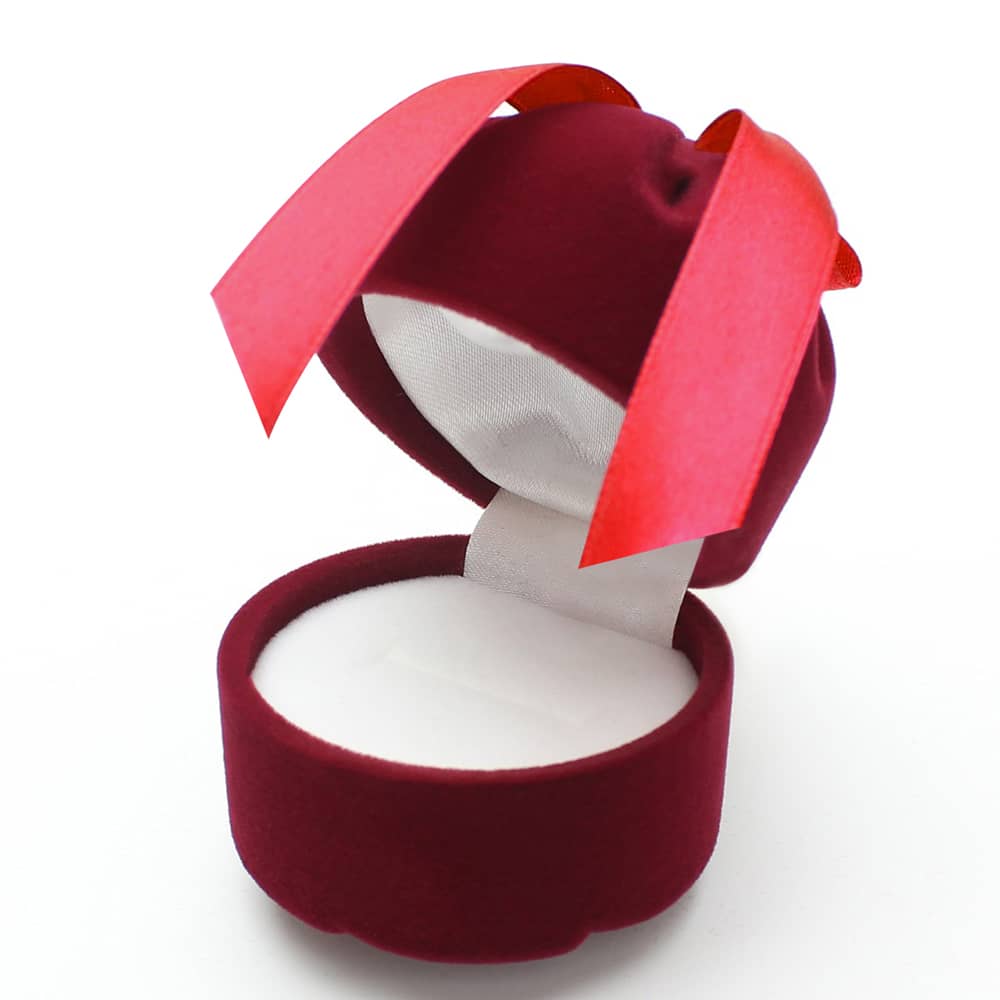 Оксамитовий футляр зі стрічкою круглої форми для каблучки.