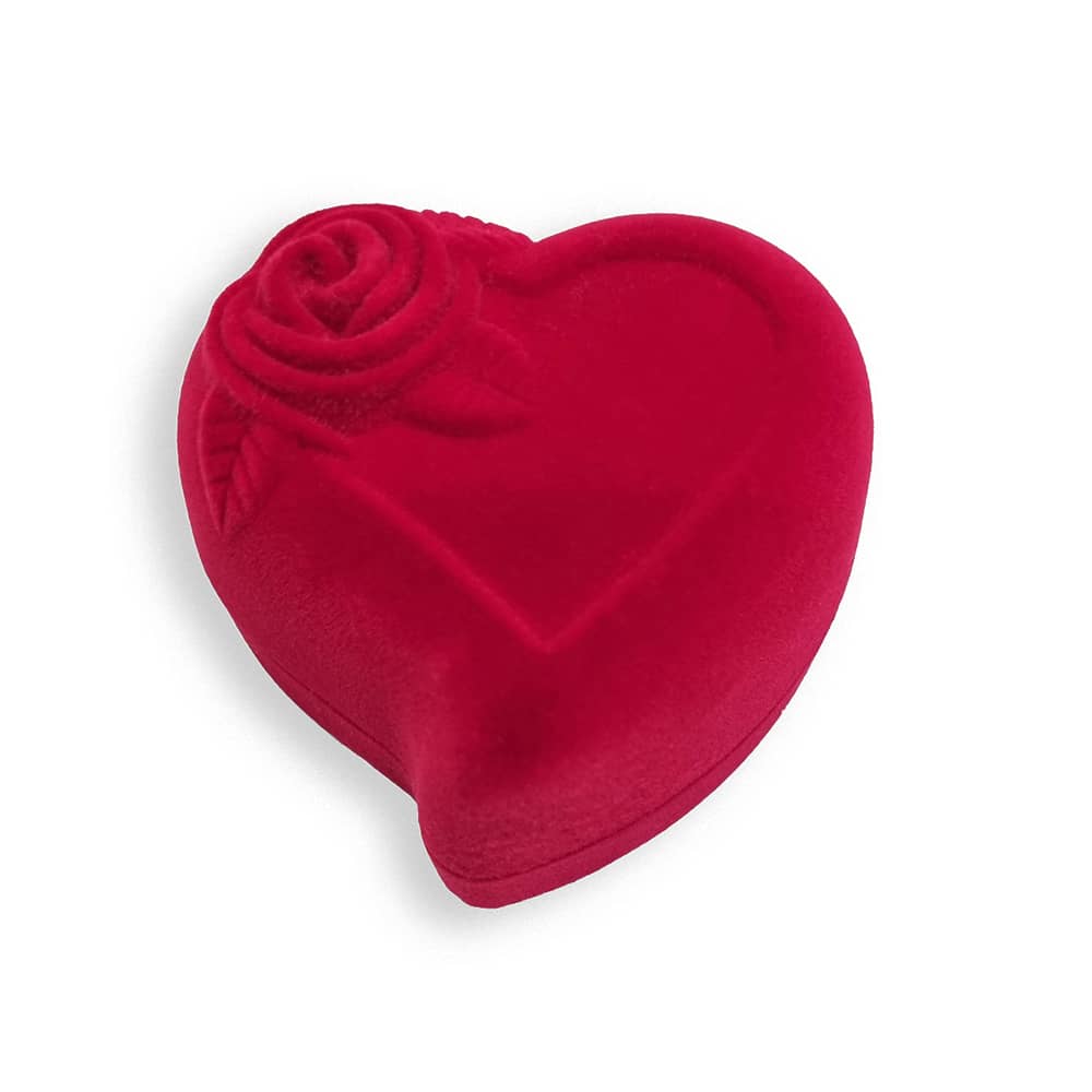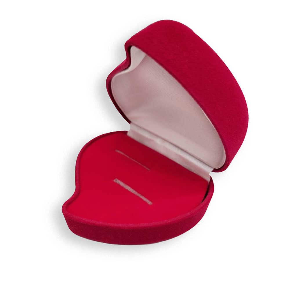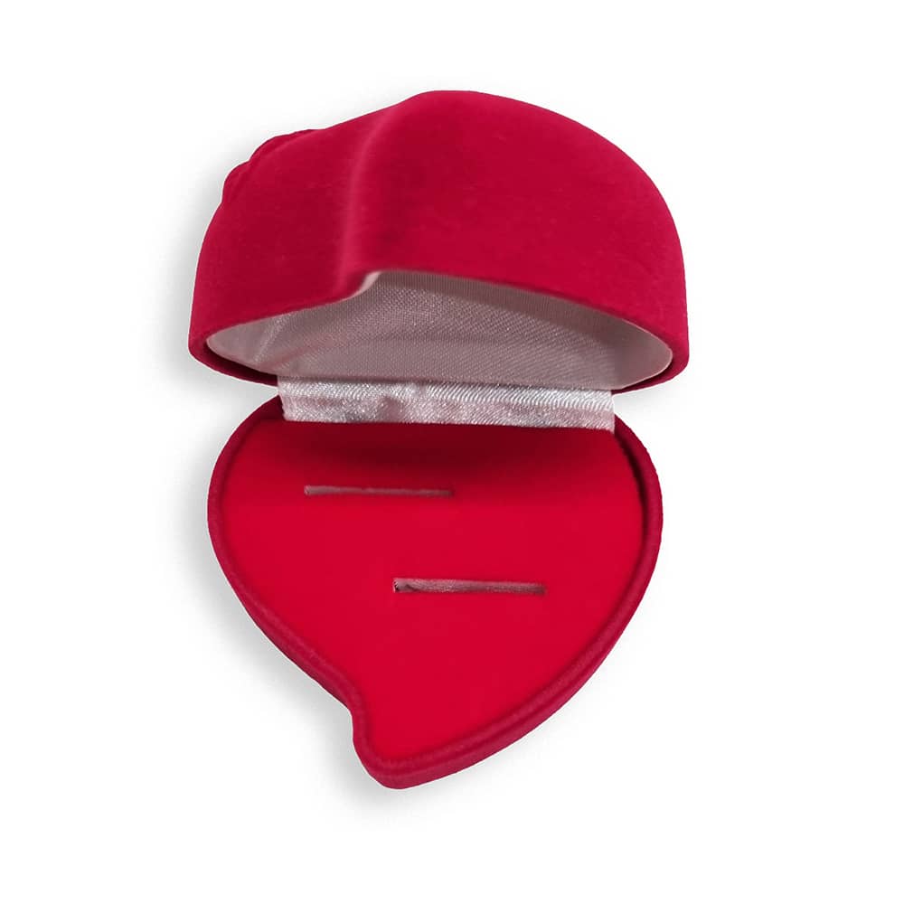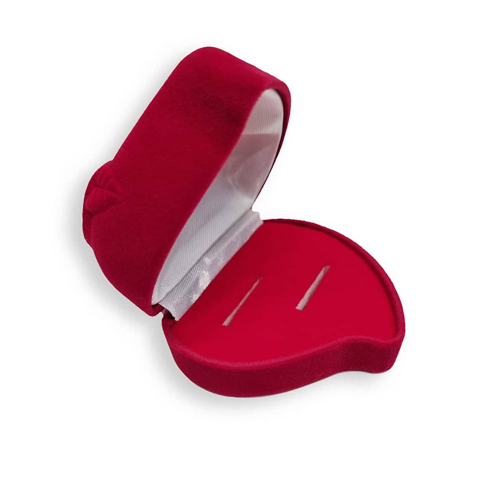 Оксамитовий футляр у формі серця для двох каблучок або пари сережок.
