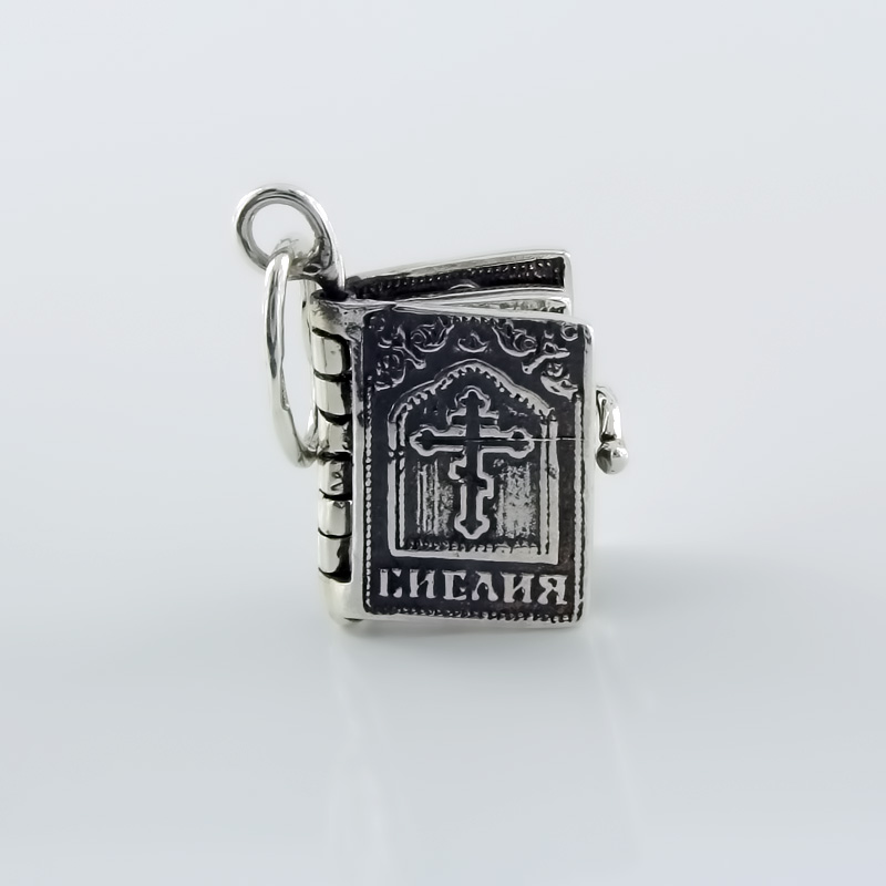 Срібний кулон-книжечка з молитвою Отче наш.
