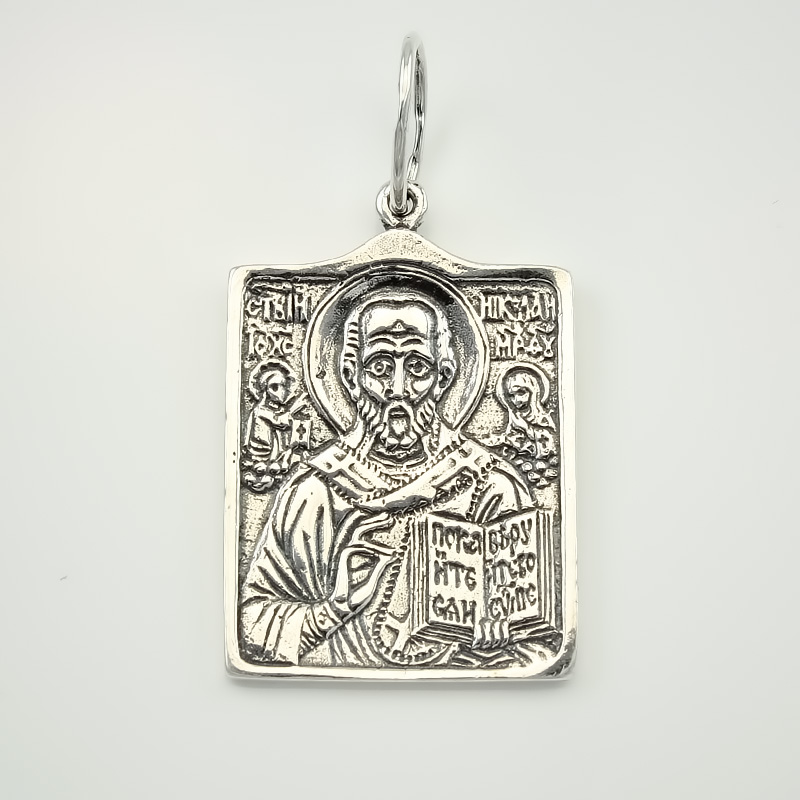 Срібний кулон-ладанка Святий Миколай Чудотворець.