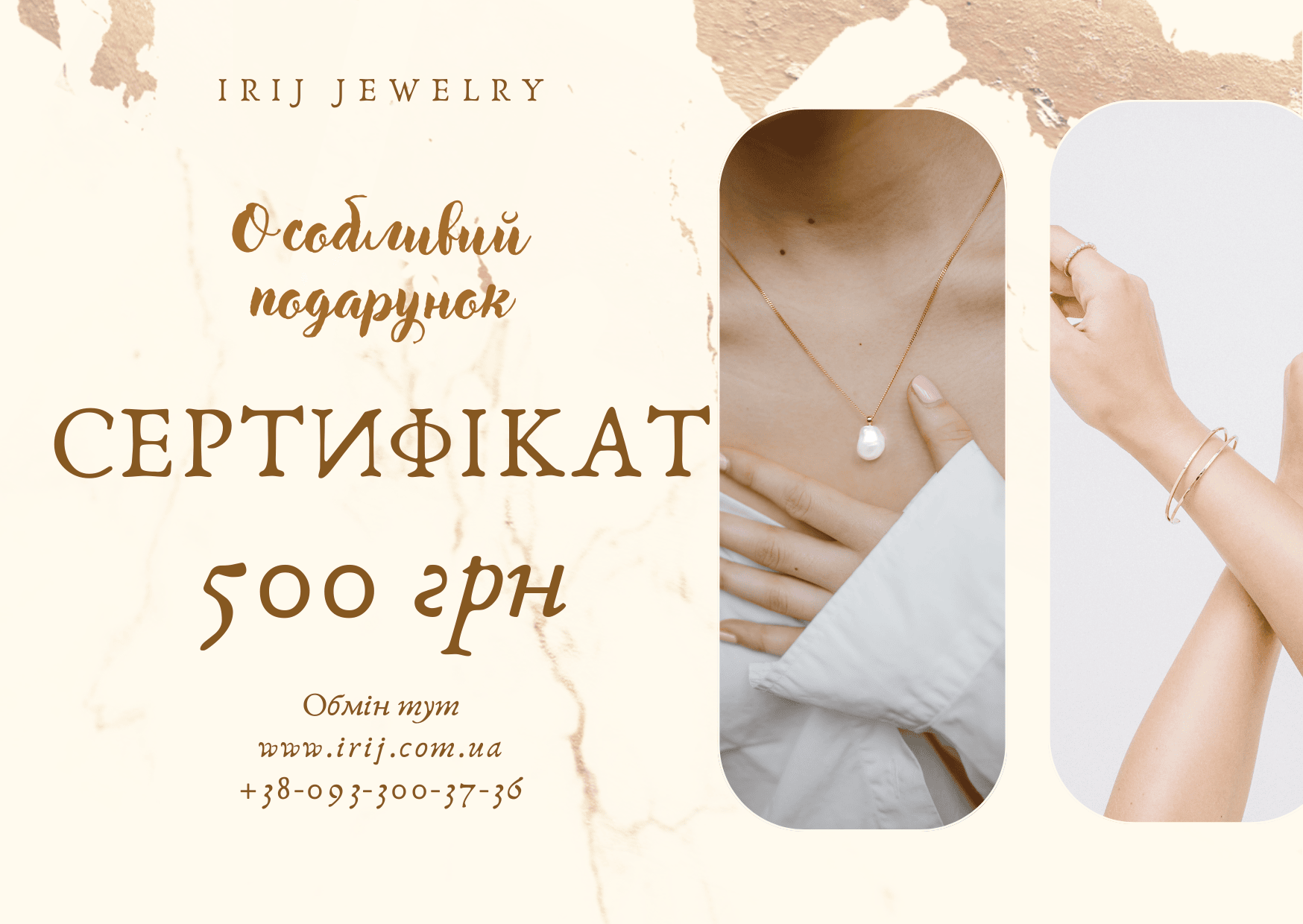 Вагаєшся, що подарувати? Можливо сумніваєшся у своєму виборі? Інтернет-магазин «Irij» допоможе тобі вирішити цю проблему. Придбай подарунковий сертифікат. Подарунковий сертифікат – це сучасне рішення привітати близьких та друзів. Вони самостійно зможуть вибрати те, що їм до вподоби. Такий подарунок буде доречним для будь-якого приводу: дня народження, Нового року, 8 березня чи іншого свята. Номінал сертифікату – 500 грн.