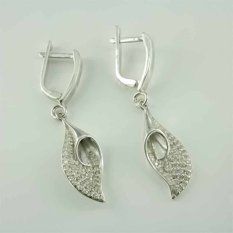 Срібні сережки з підвісками зі вставками з фіаніту, виготовлені зі срібла 925 проби.