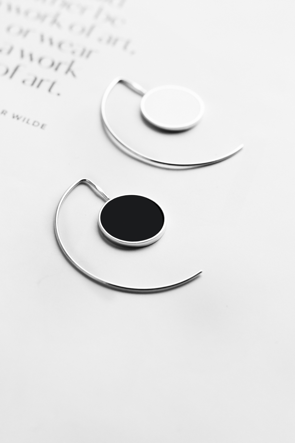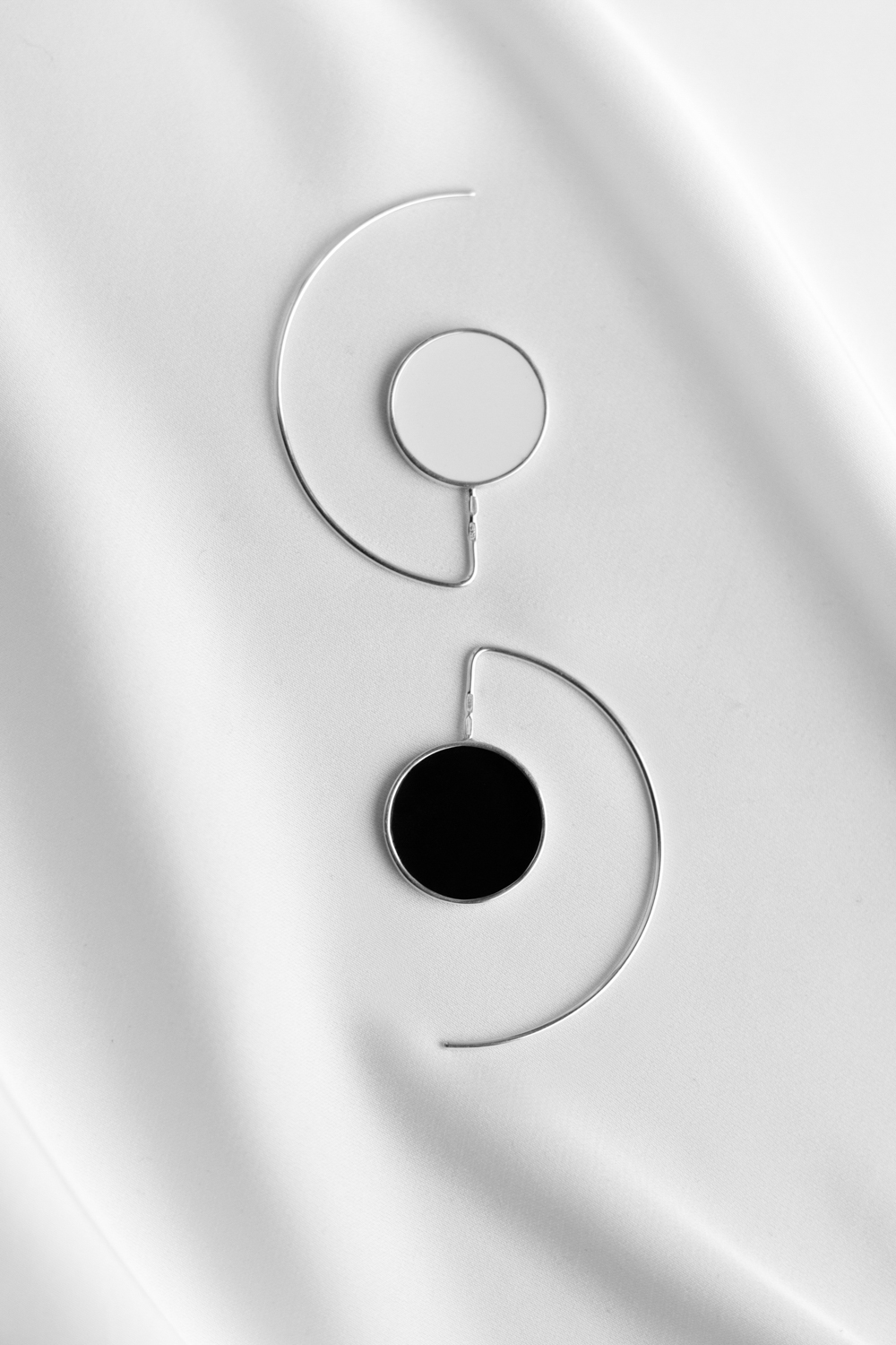 Кожна сережка двостороння. З одного боку - біла емаль, зі зворотнього - чорна.