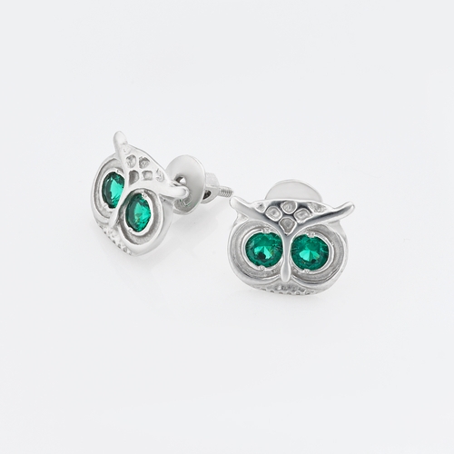 Жіночі срібні сережки із закруткою (пусети) Сова.