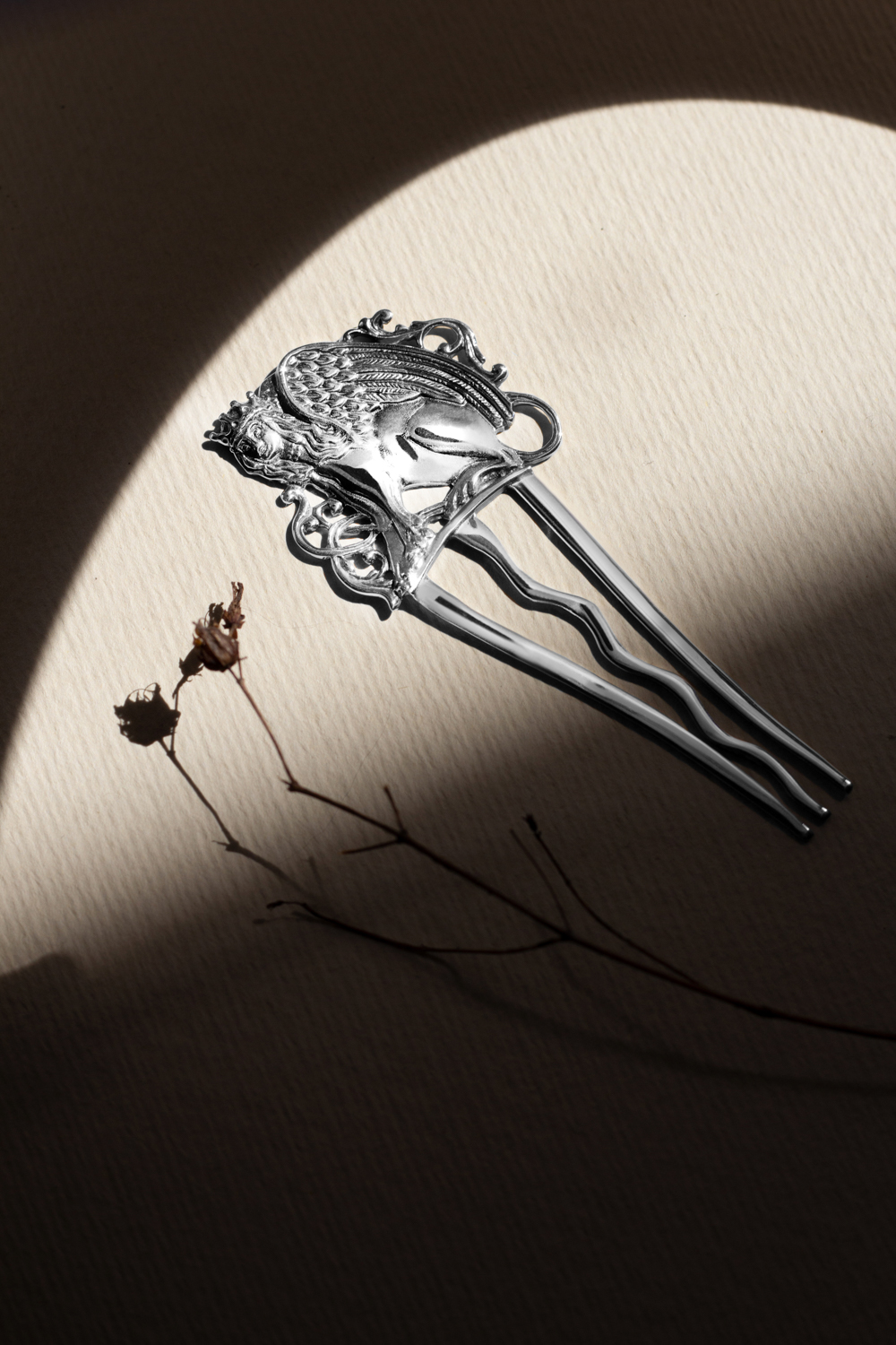 Срібна жіноча шпилька-гребінь для волосся Сірена.