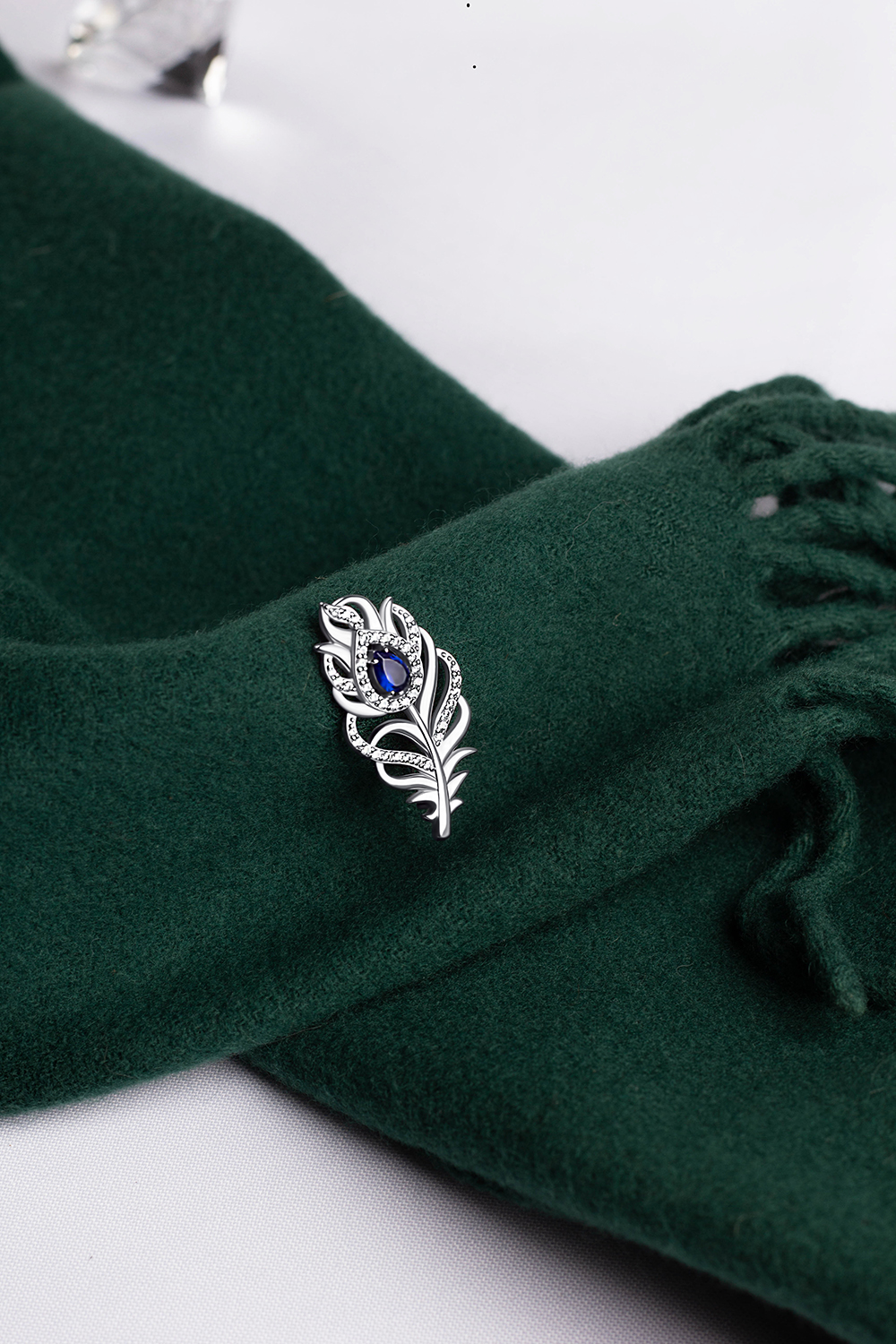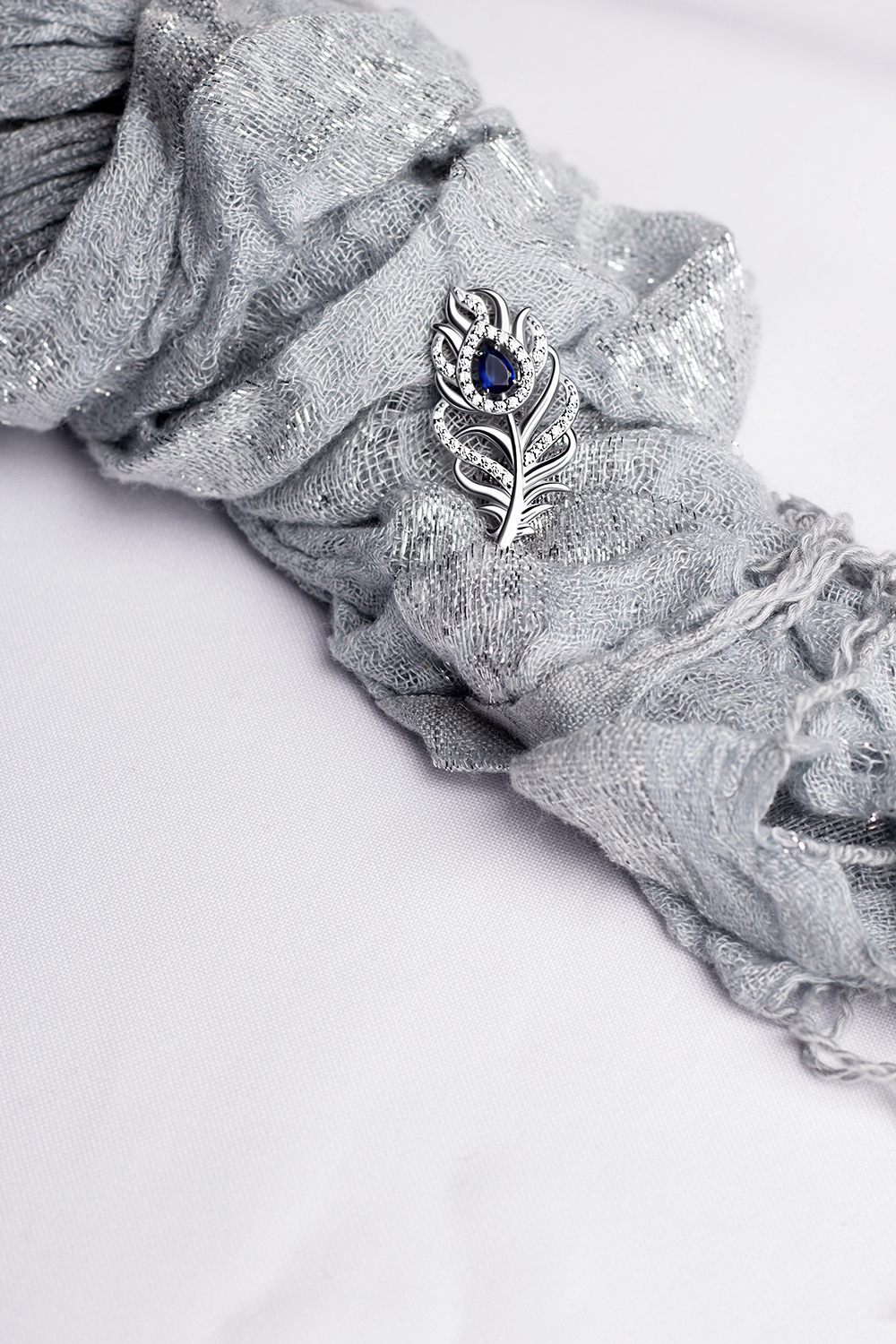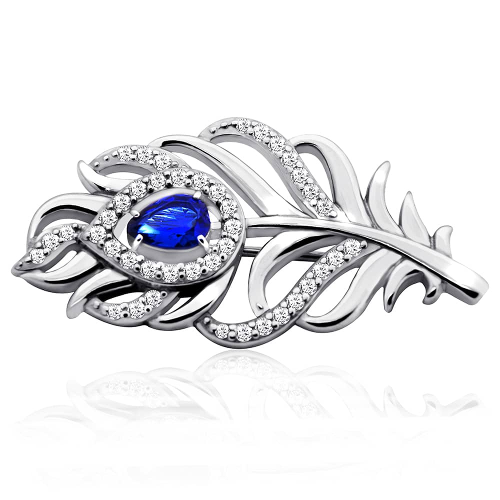 Срібна брошка Перо павича.