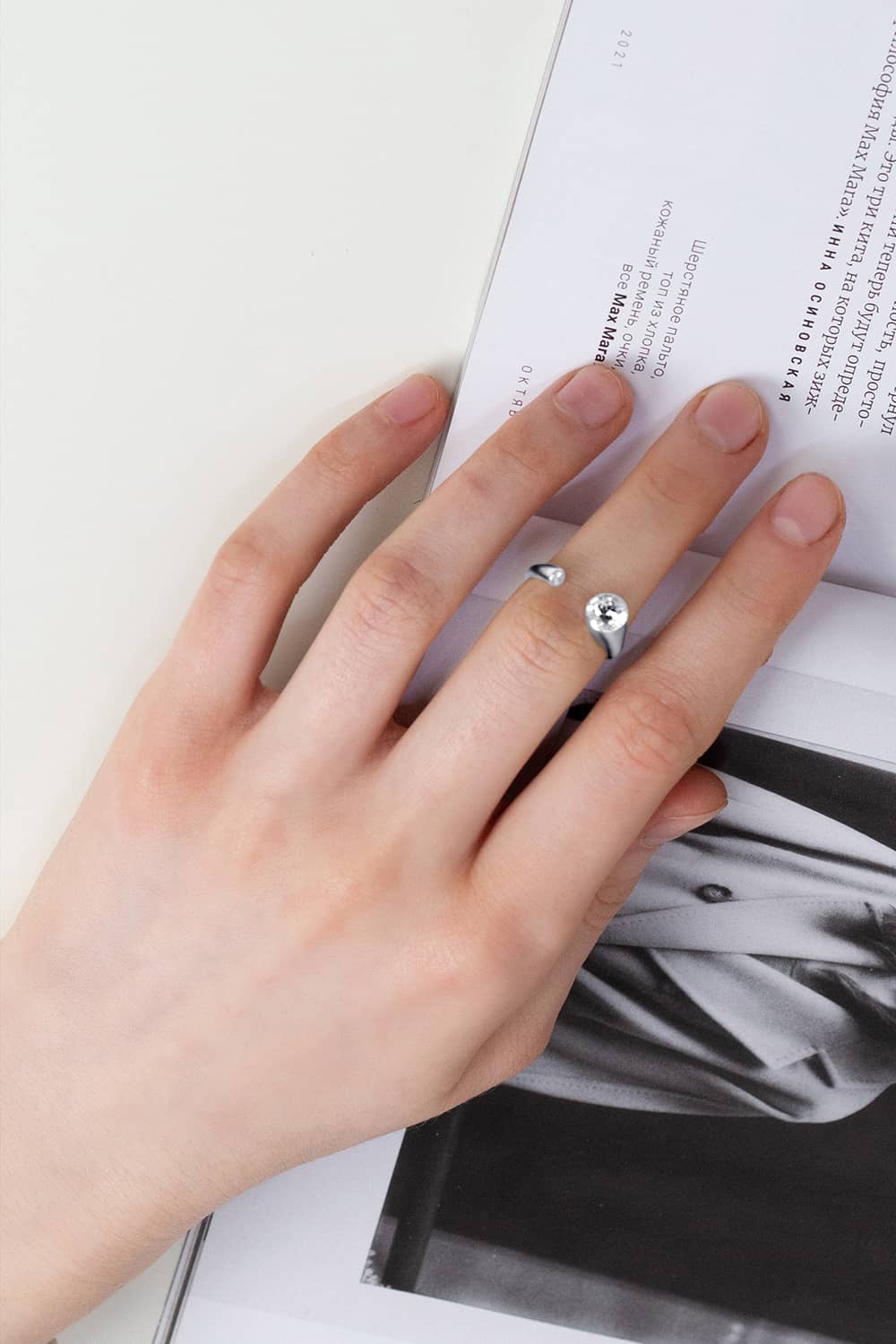 Це дає можливість носіння на будь-якому пальці та комбінування її з іншими прикрасами.