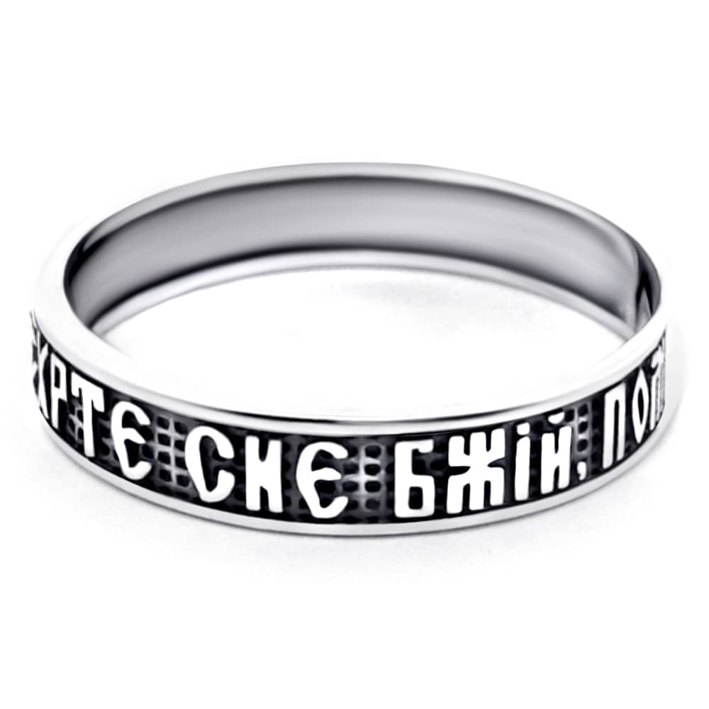 Обручка зі срібла з написом "ГАН ІНСЕ ХРТЕ СНЕ БЖІЙ, ПОМИЛУЙ МА".
