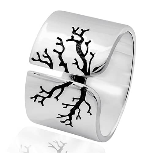 Це може бути поверхня з імітацією шкіри; або історія, зображена у вигляді малюнка по ширині каблучки.