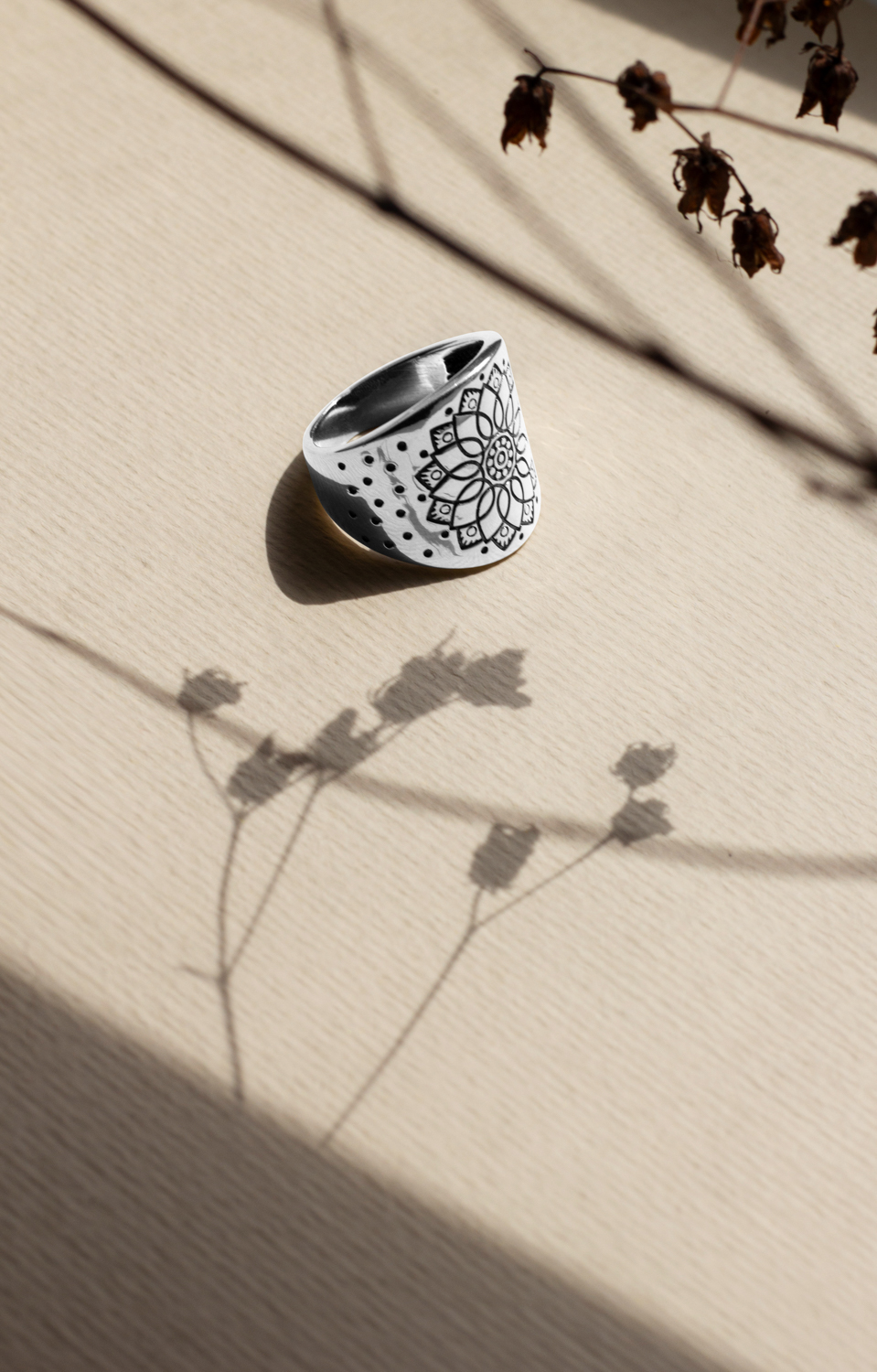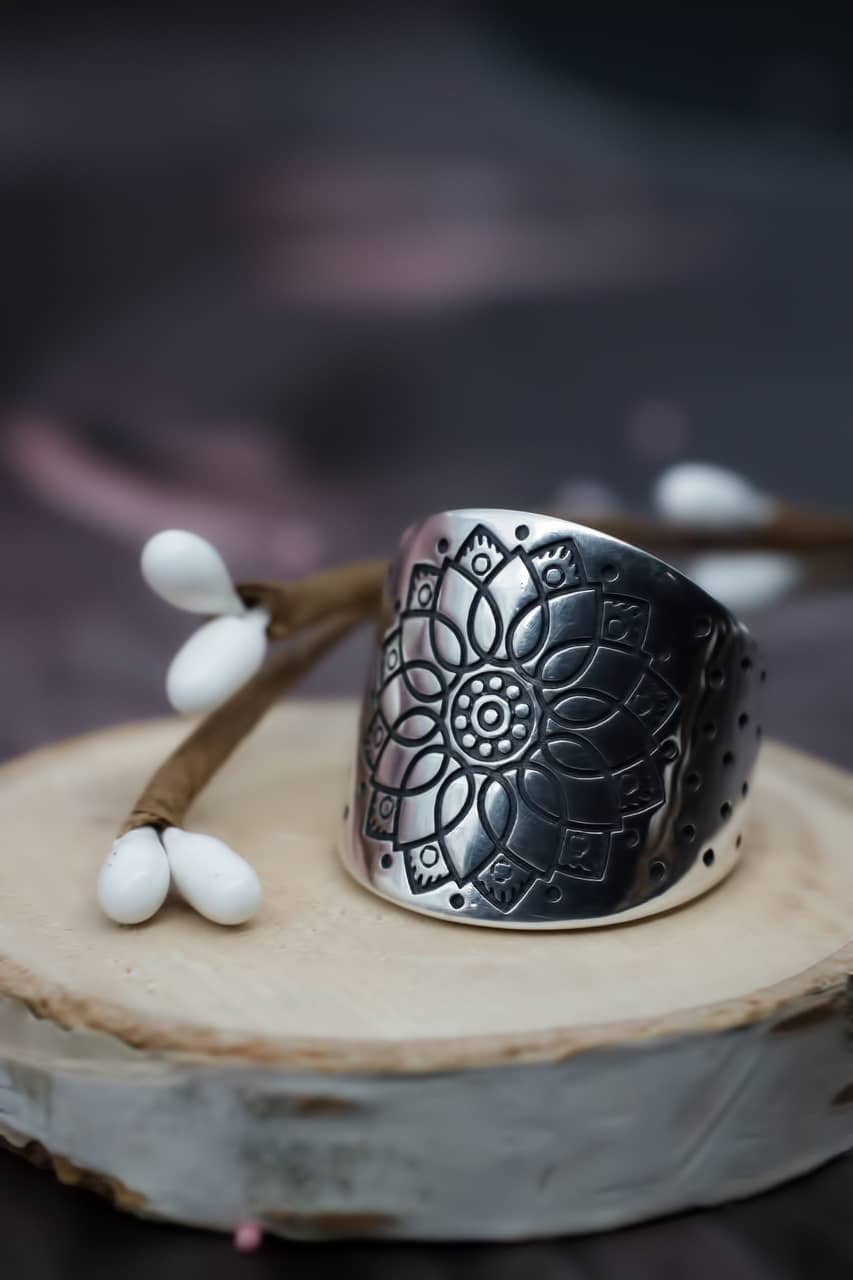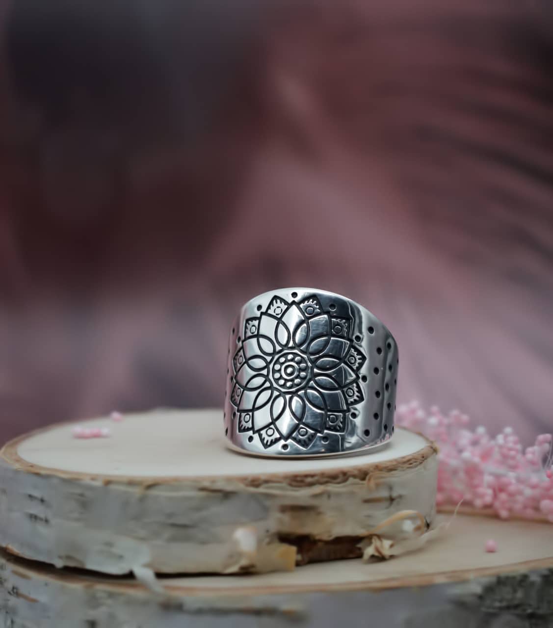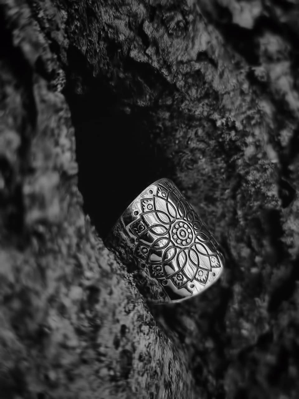 Це може бути поверхня з імітацією шкіри; або історія, зображена у вигляді малюнка по ширині каблучки.