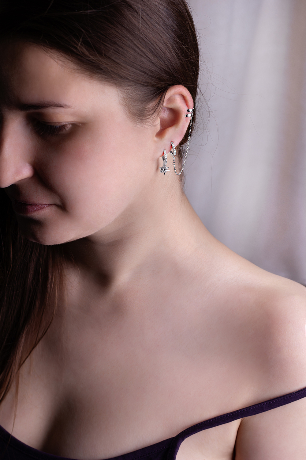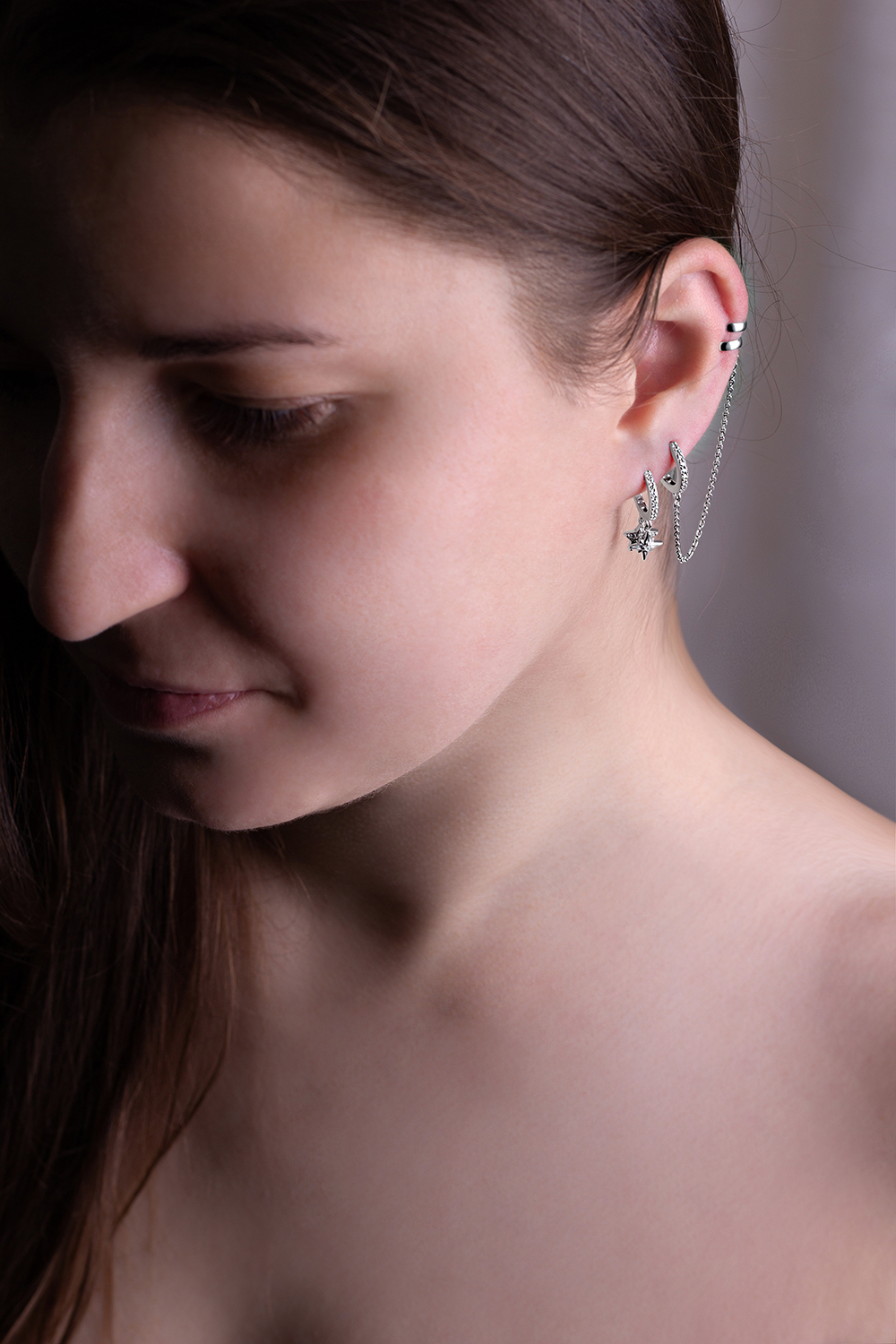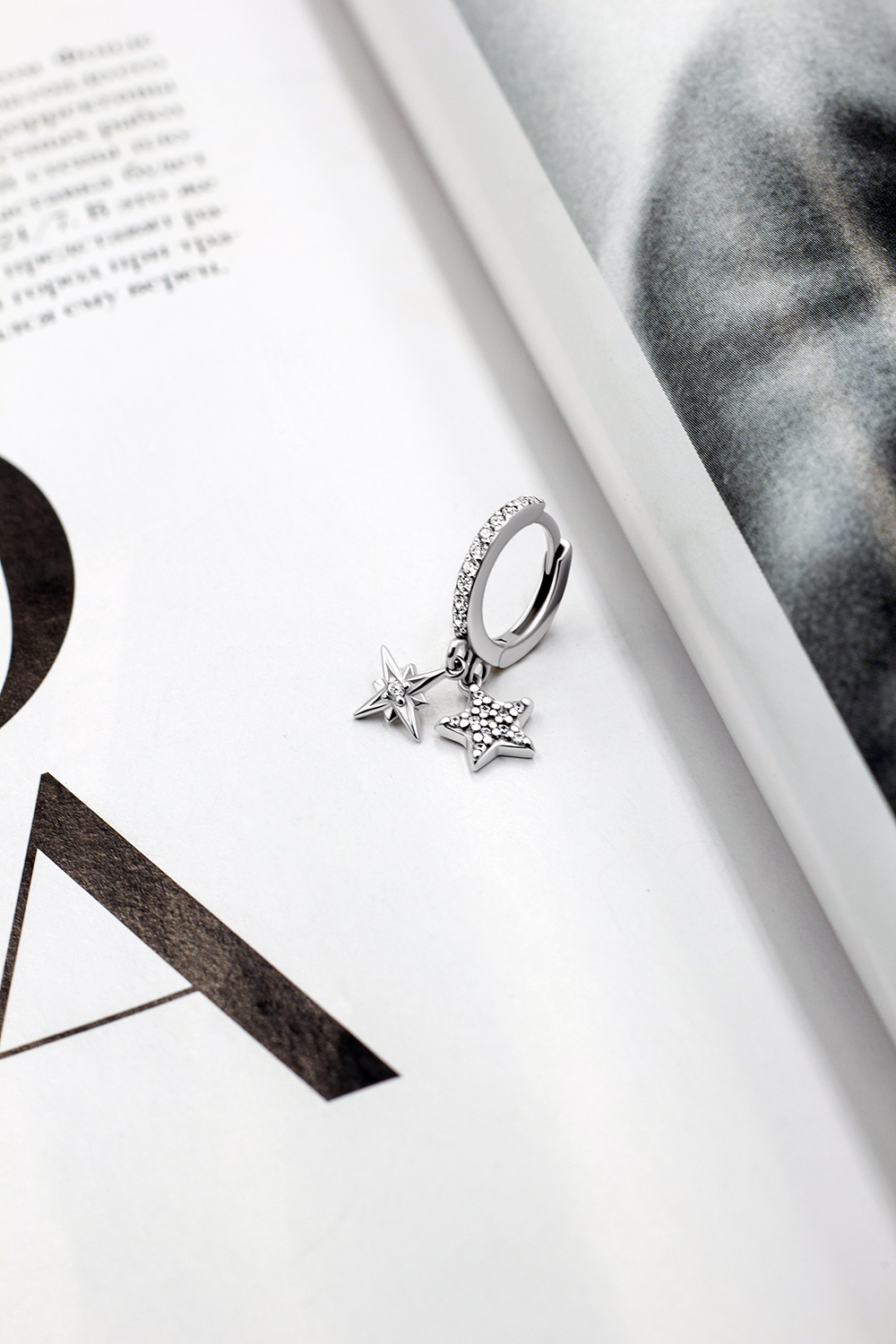 Жіноча срібна сережка в одне вухо.