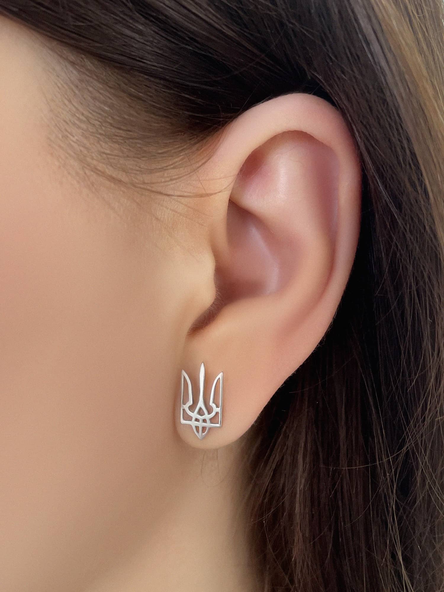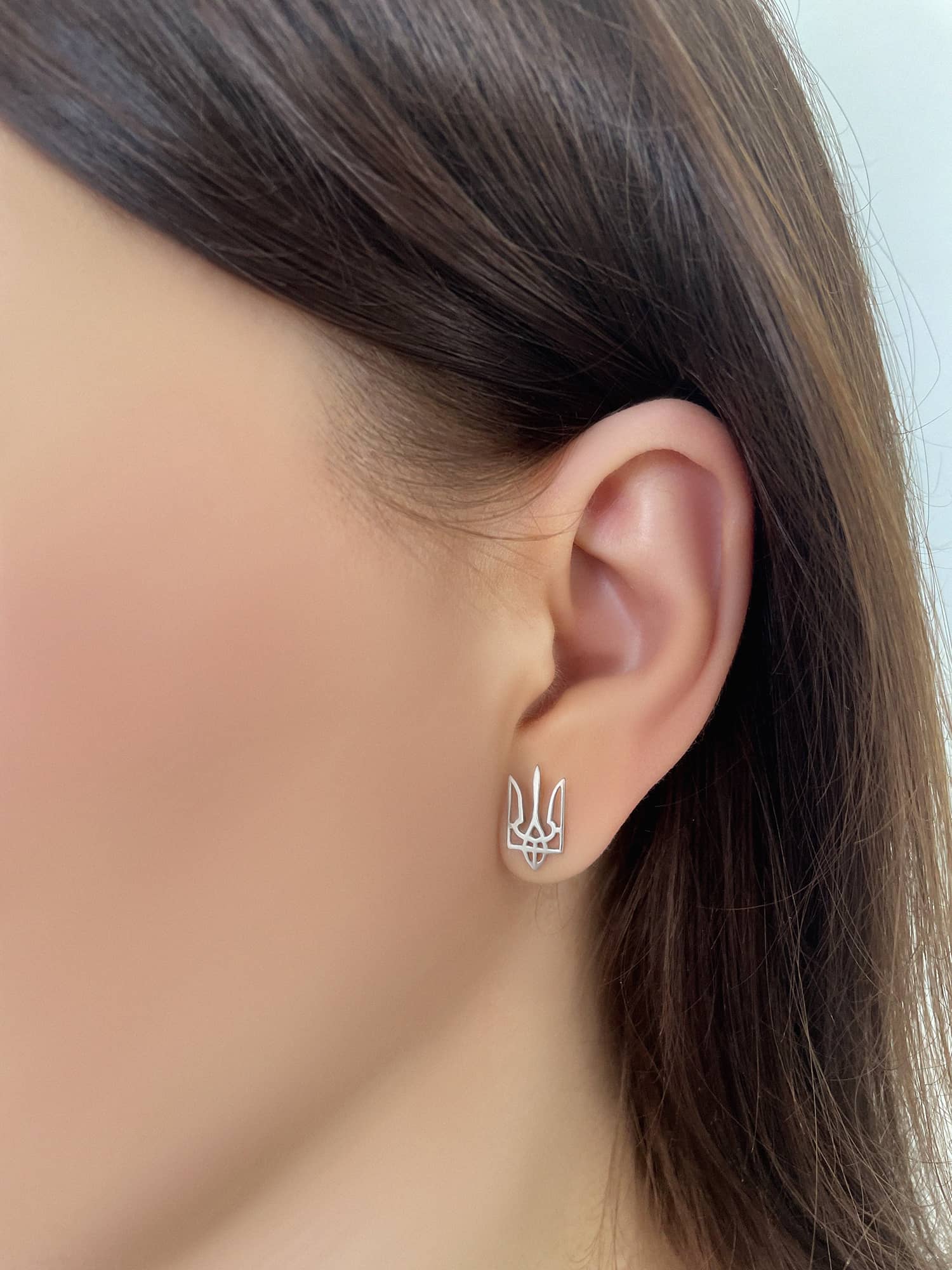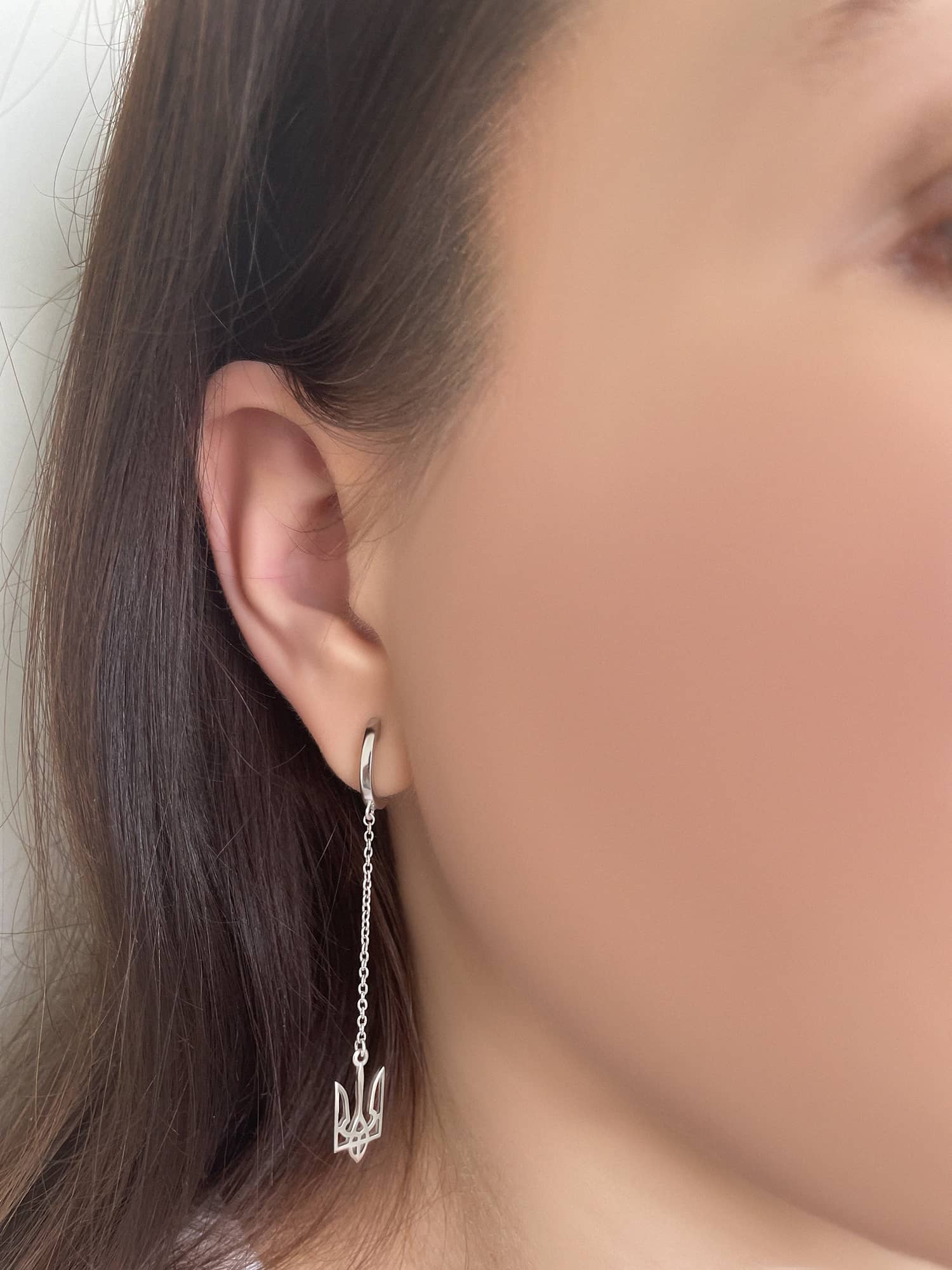 Набір зі срібною сережкою-пусетою Тризуб та сережки на ланцюжку Тризуб.