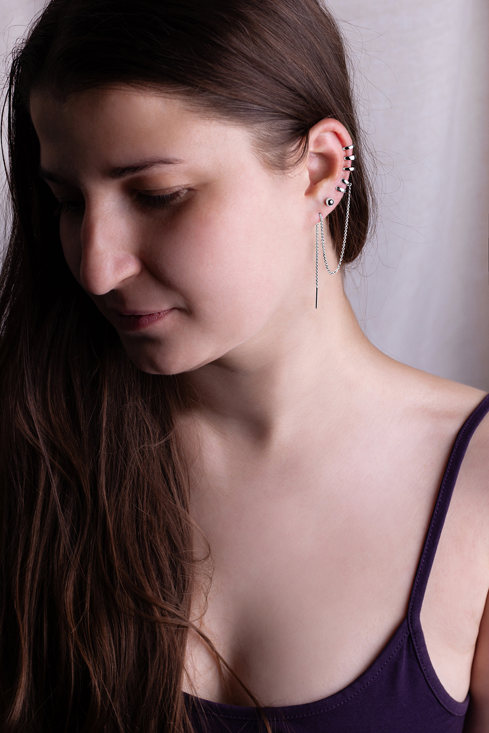 Особливість цієї прикраси полягає в тому, що її легко можна комбінувати з іншими сережками.