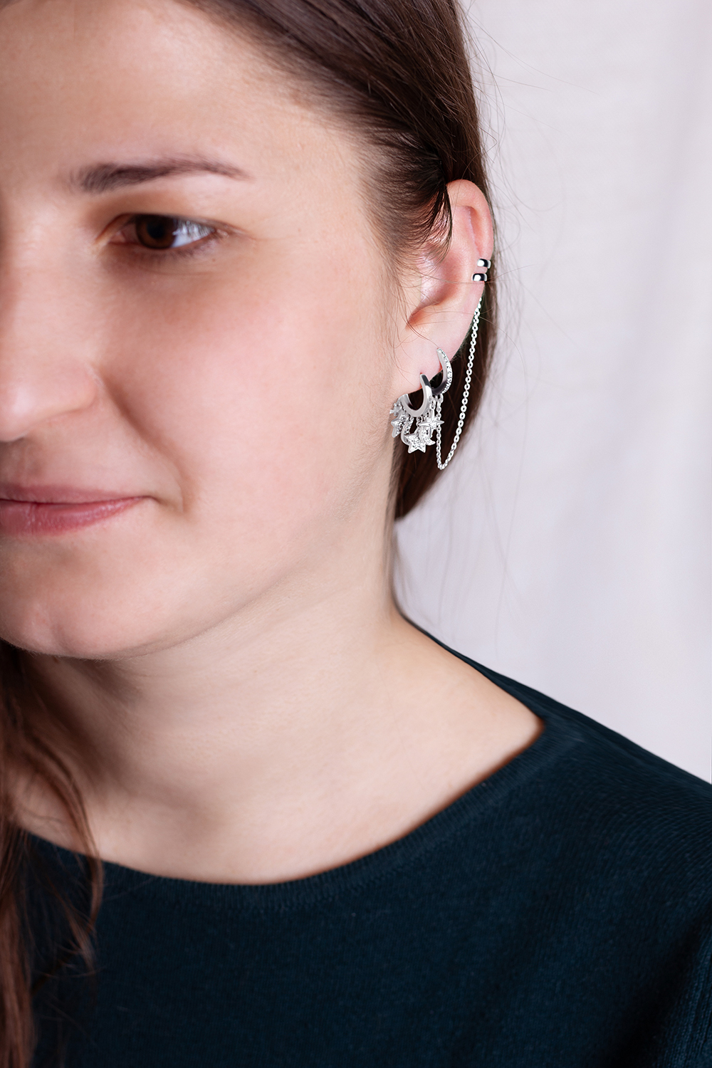 Жіноча срібна сережка з кафою в одне вухо.