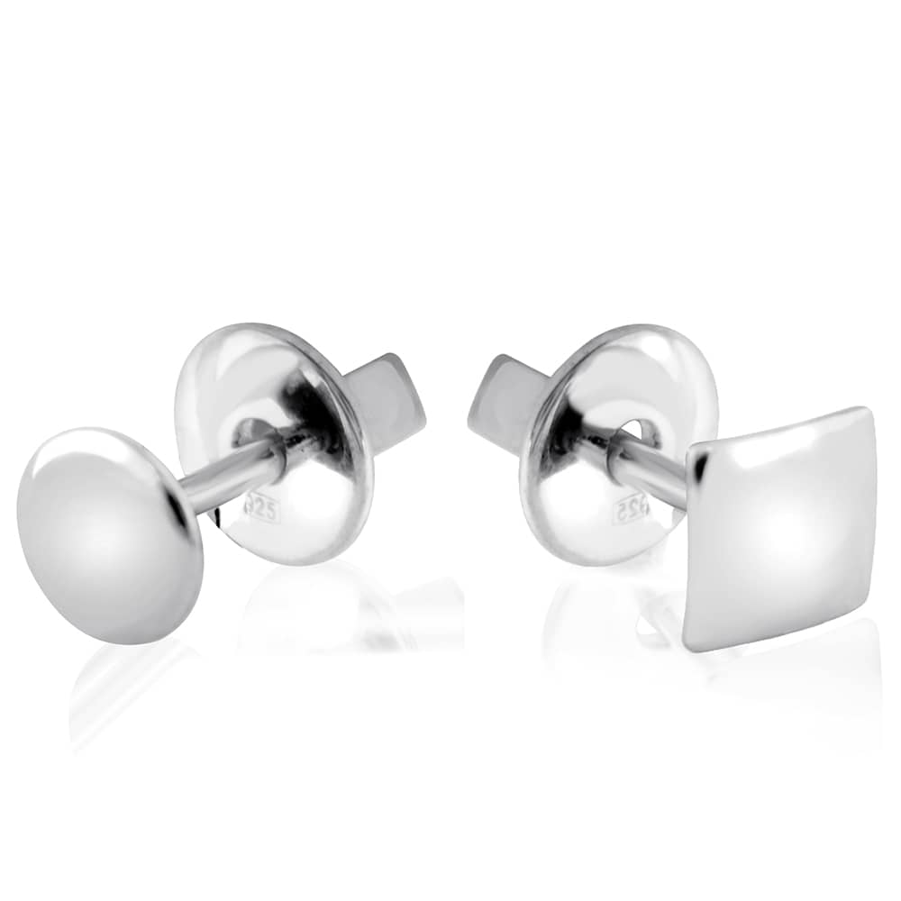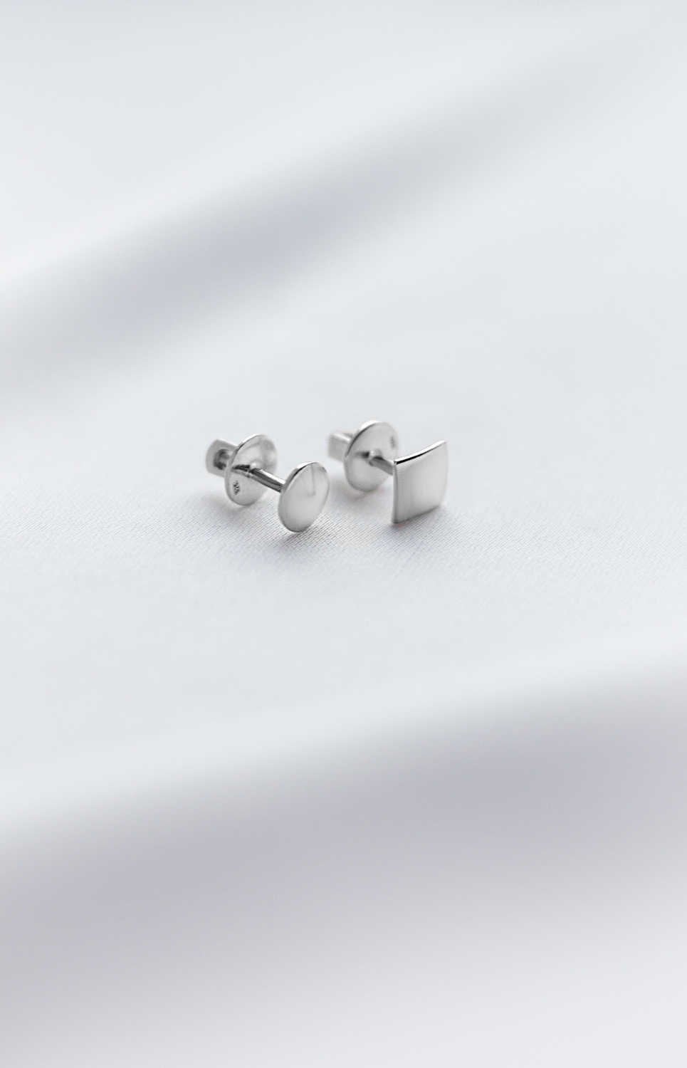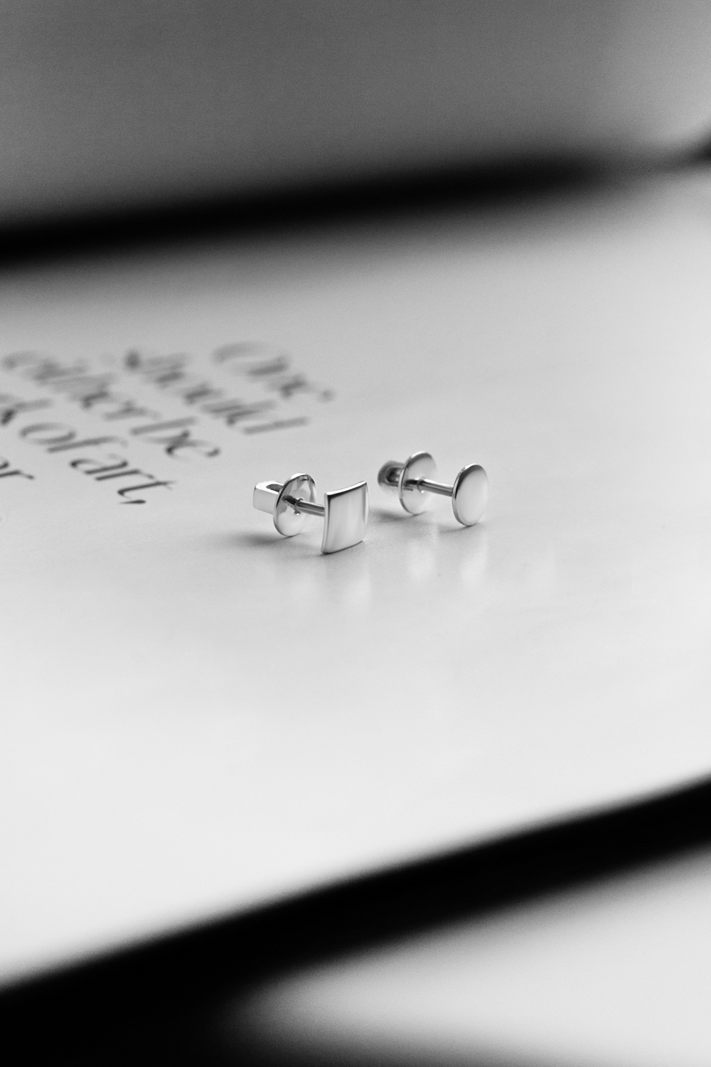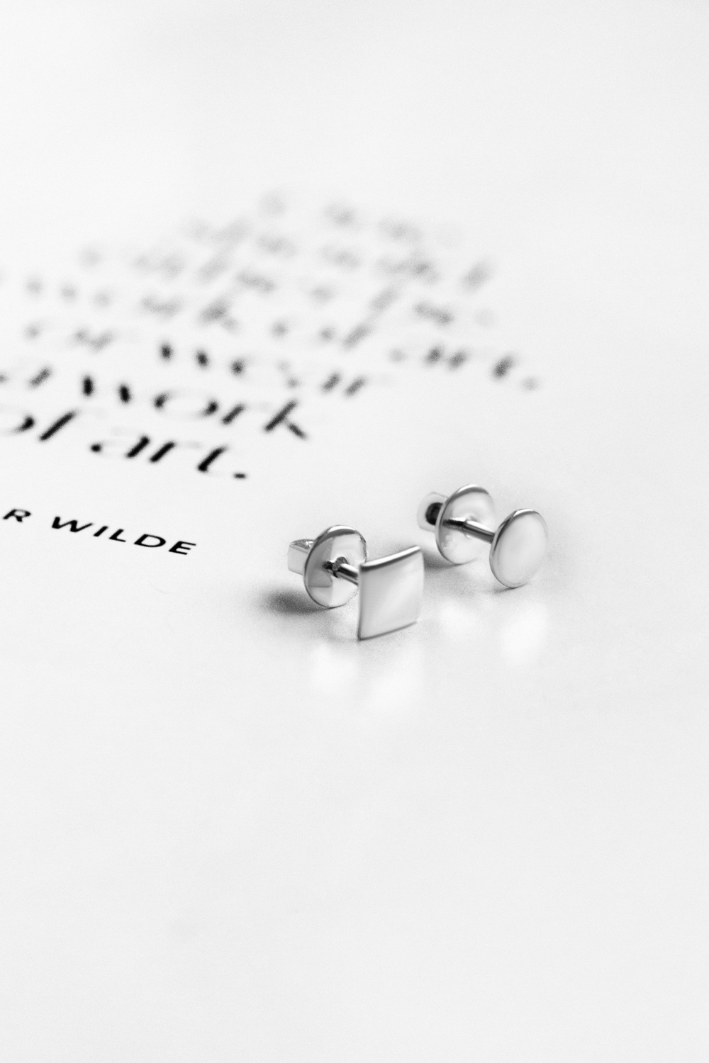 Одна сережка - у формі квадрата, друга - у формі кола.