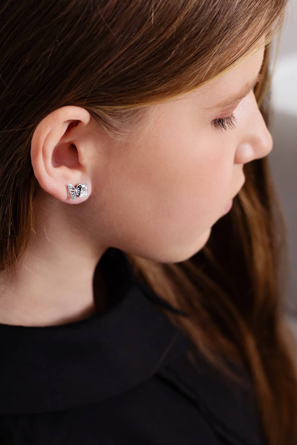 Жіночі срібні сережки із закруткою (пусети) Метелики.