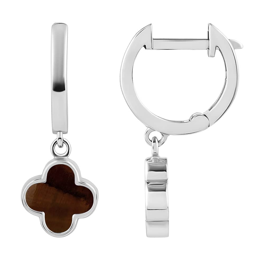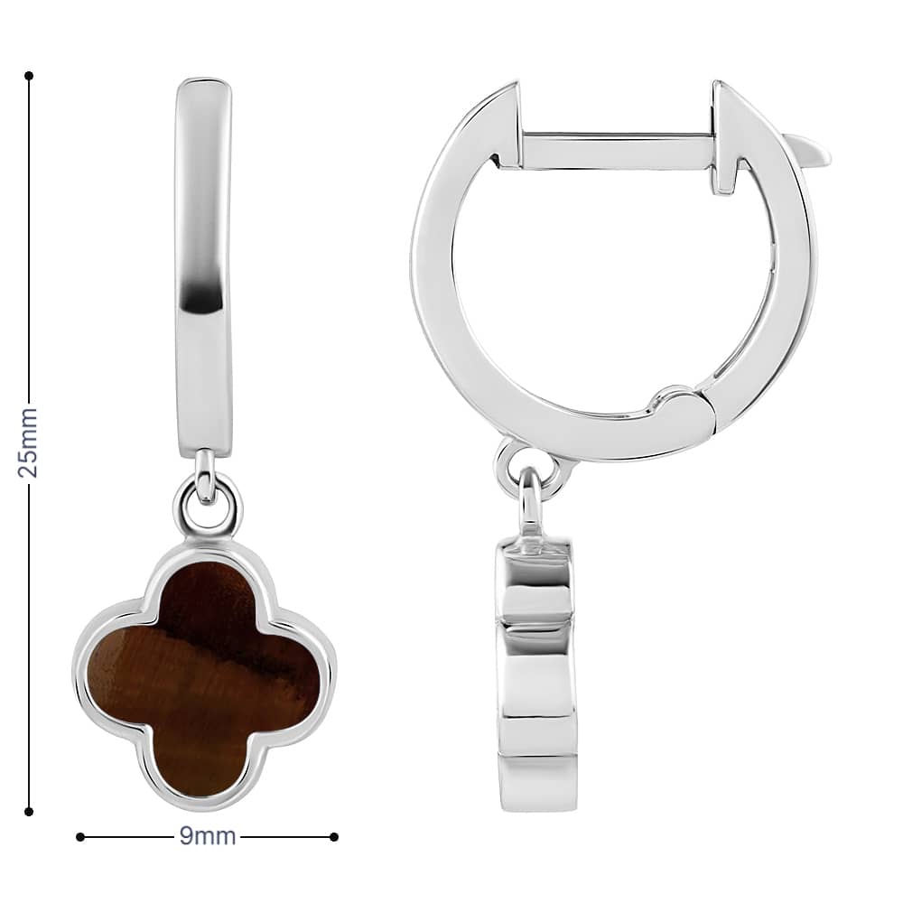 Жіночі срібні сережки Конюшина з тигровим оком.