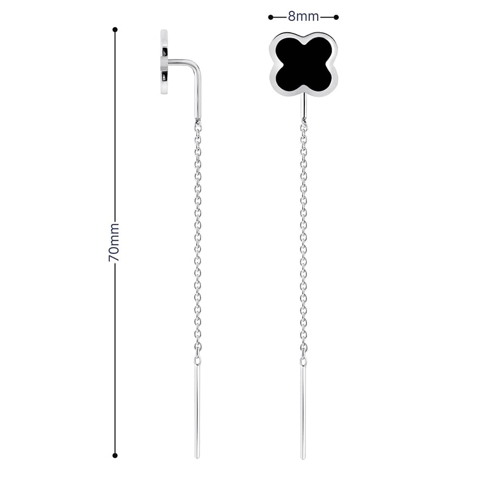 Срібні сережки-протяжки Конюшина з емаллю (40083)