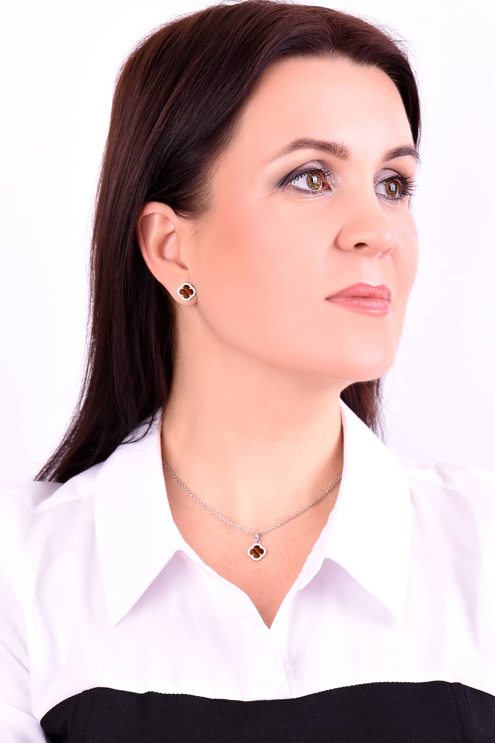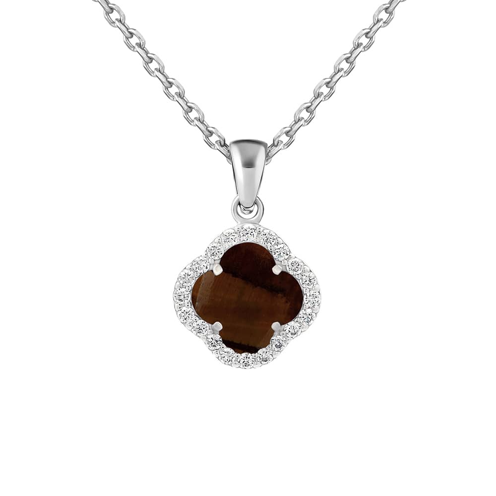 Срібний жіночий кулон Конюшина з тигровим оком.