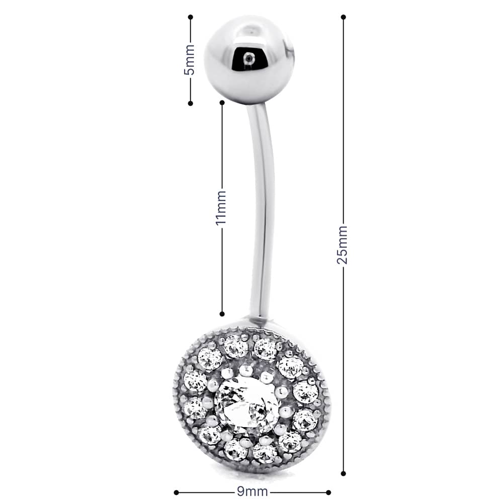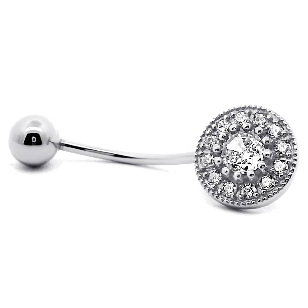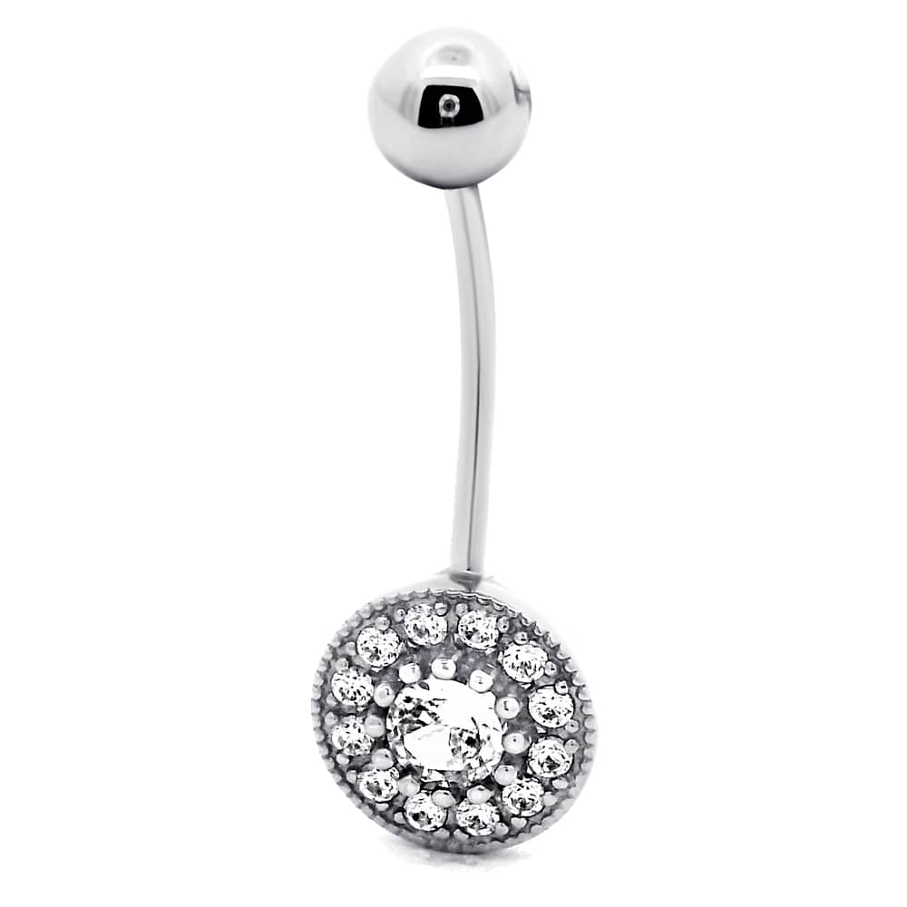 Срібний пірсинг (сережка) в пупок.