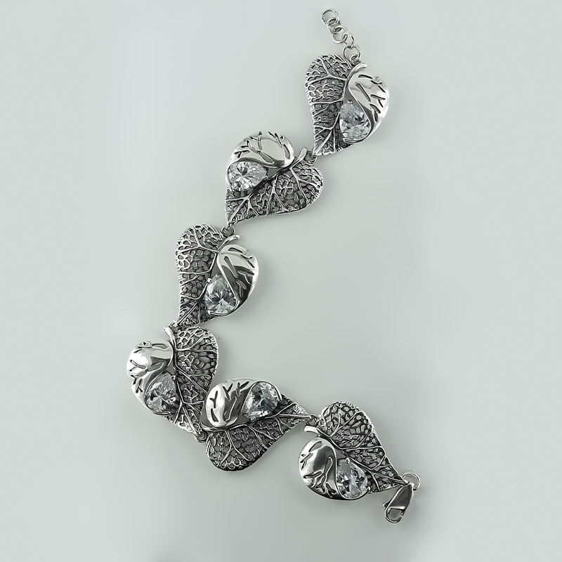 Дуже гарно виглядає браслет в поєднанні з брошкою, сережками, каблучкою та кулоном в цьому стилі.