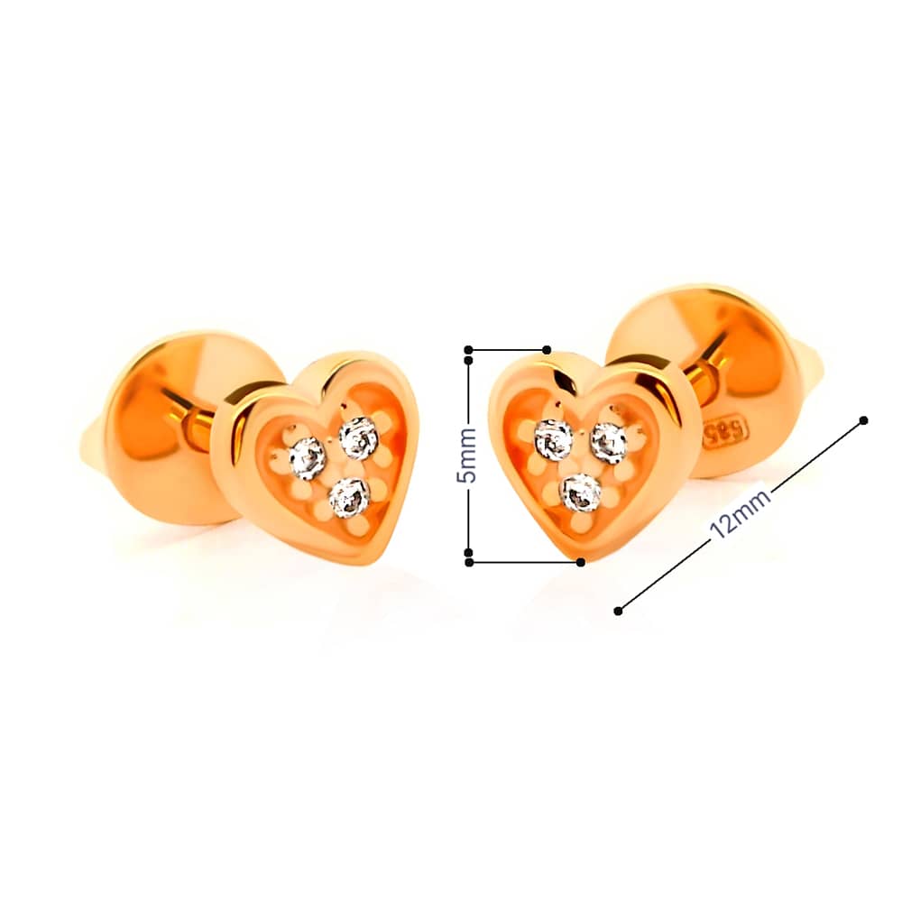 Жіночі золоті сережки із закруткою (пусети) Серця.