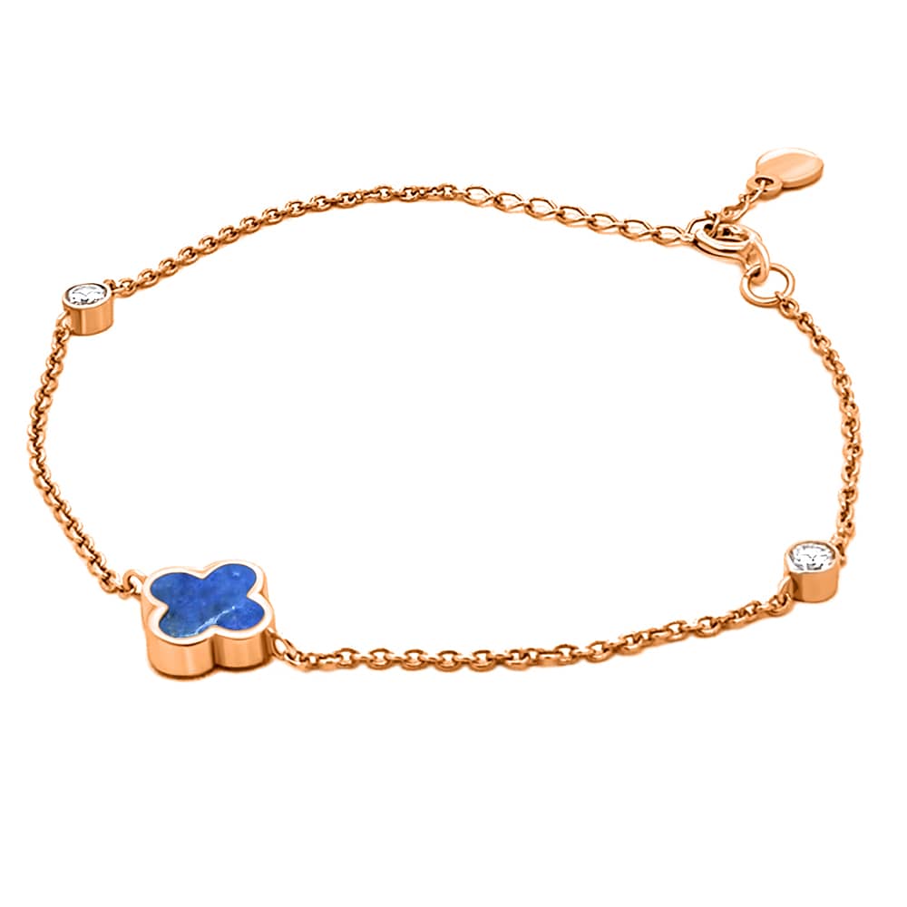 Золотий жіночий браслет Конюшина з лазуритом.