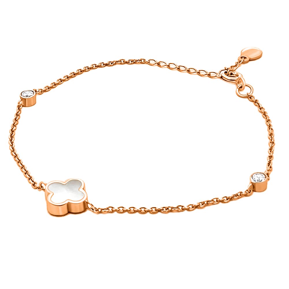 Золотий жіночий браслет Конюшина з перламутром.