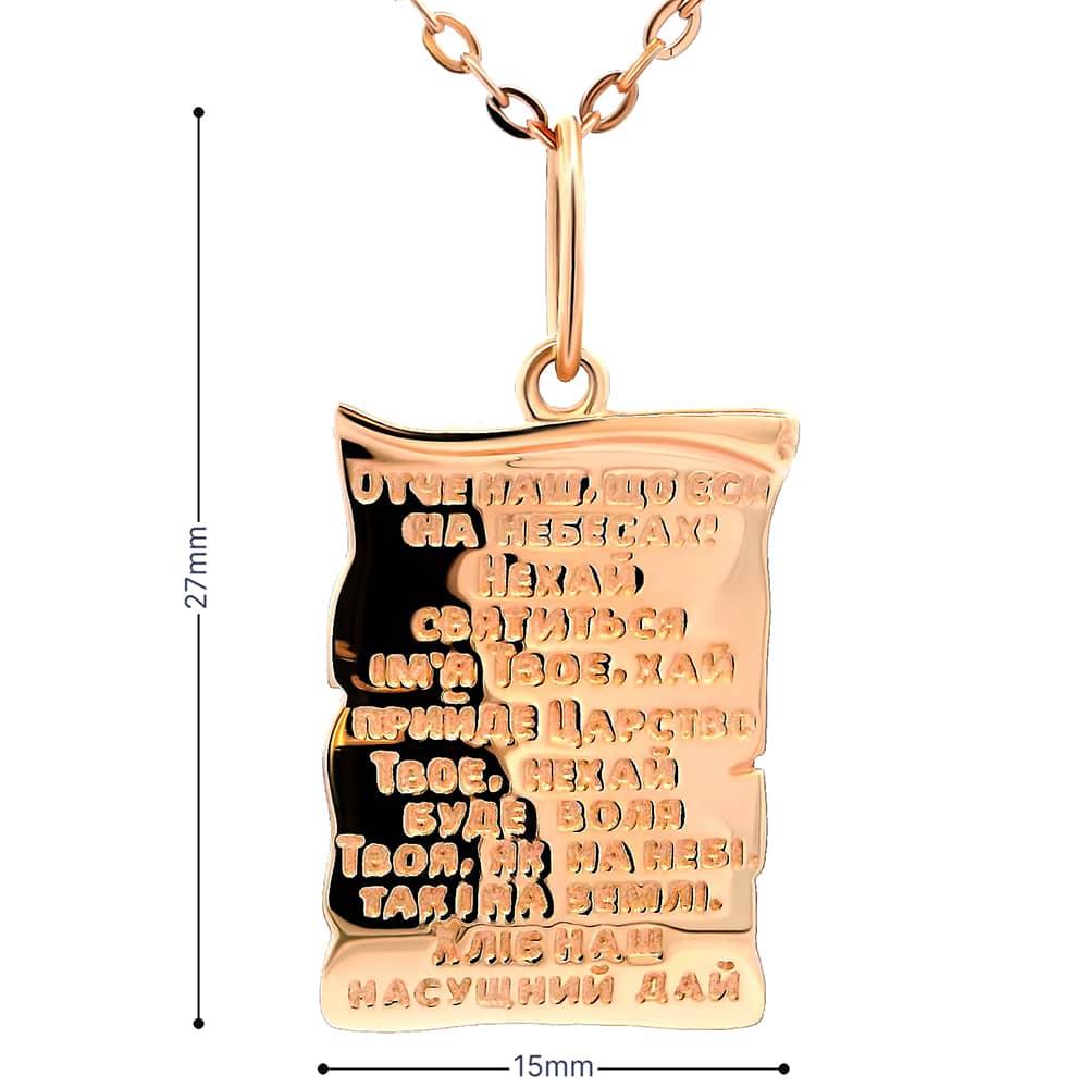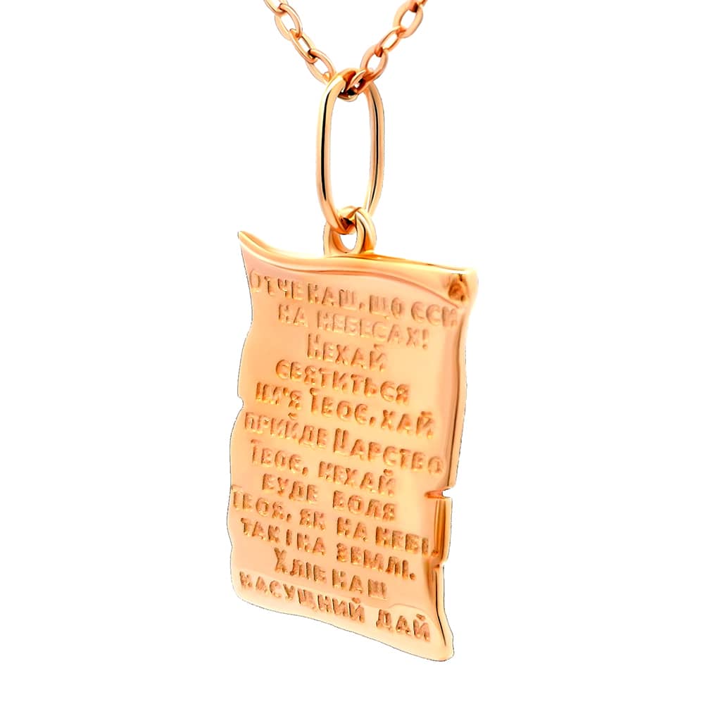 Золотий кулон з молитвою Отче наш.