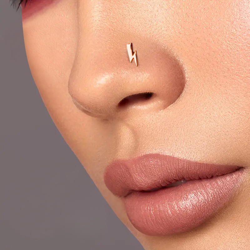Золотий пірсинг (сережка) в ніс Блискавка.